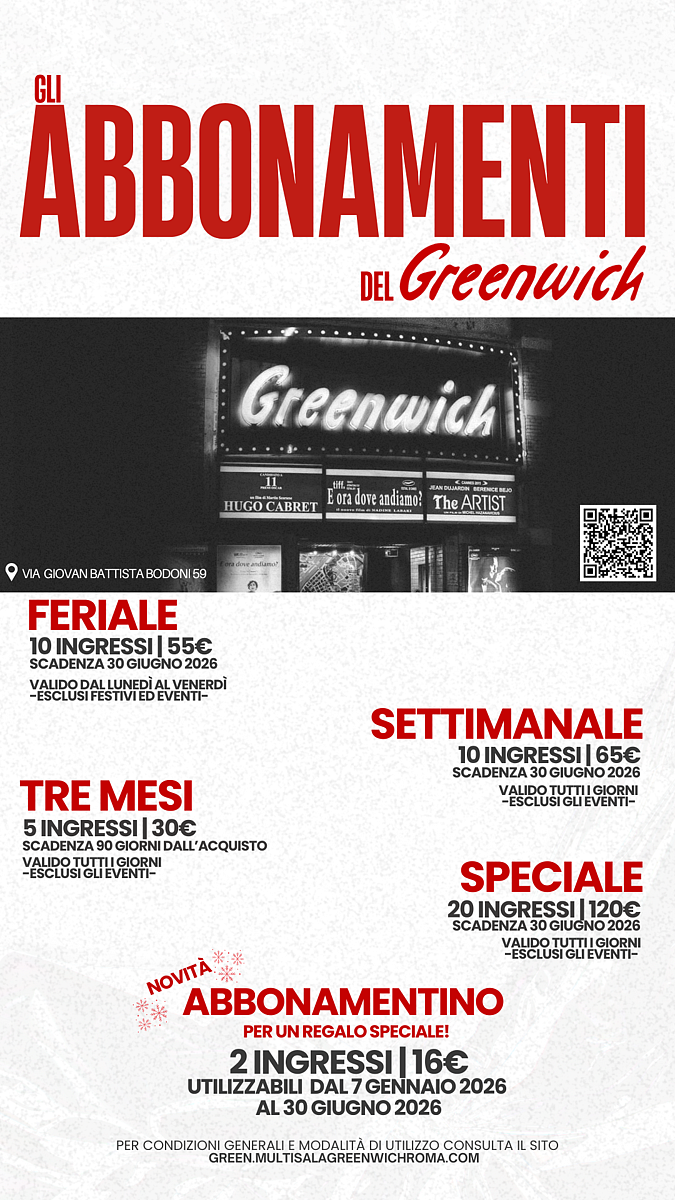 Scopri gli abbonamenti del GREENWICH per vivere il cinema di qualità in modo ancora più conveniente